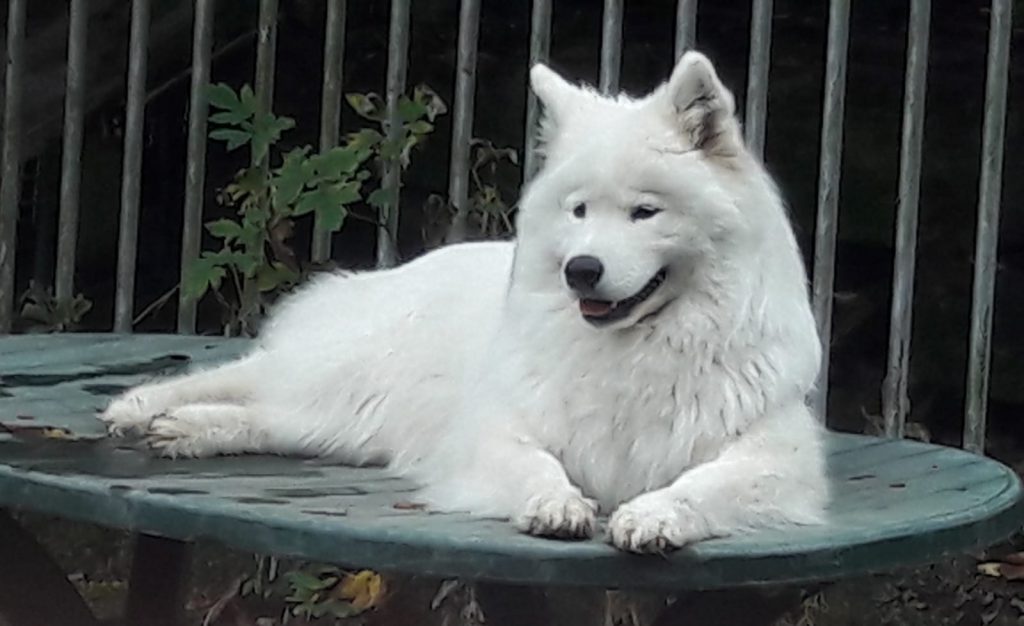 Missi ist unser Powergirl die gern vor lauter Freude beim Spiel bellt und auch gern im Rudel die „erste Geige“ spielen möchte. Sie schafft das dann auch meistens. Sie ist sehr gelehrig und hat gelernt gut auf Rückruf zu reagieren, nachdem sie sich in ihrem jugendlichen Übermut manchmal etwas zu weit entfernte. Missi kommt aus dem polnischen Zwinger „Sesto Senso“, wir haben sie im Oktober 2018 von der Züchterin Justina Wiktorowska abgeholt. Sie hat sich zu einer wunderschönen typvollen und sehr selbstbewußten Samojedenhündin entwickelt und hat auch schon ihre erste Ausstellung mit Bravour absolviert. Weitere Ausstellungen folgten leider nicht mehr – Corona geschuldet – sind aber auch nicht mehr geplant.